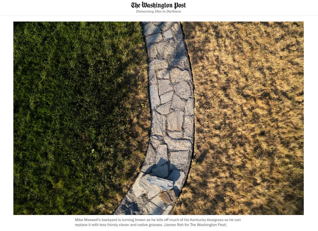 Two years ago, to do my small part in addressing lake decline, I let a quarter acre of my Kentucky Bluegrass lawn die by ending my practice of watering it with automatic sprinklers three to four times a week during hot summer months. No more water, no more fertilizer. No more weed killer. No more grub pesticides. I simply let grass on this quarter acre die and allowed it to repopulate with native plant species that had evolved to thrive in northern Utah’s semi-arid climate. All of this ended up in a Washington Post story that summer.
