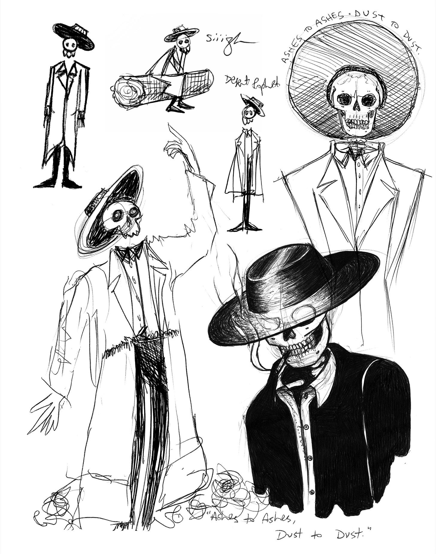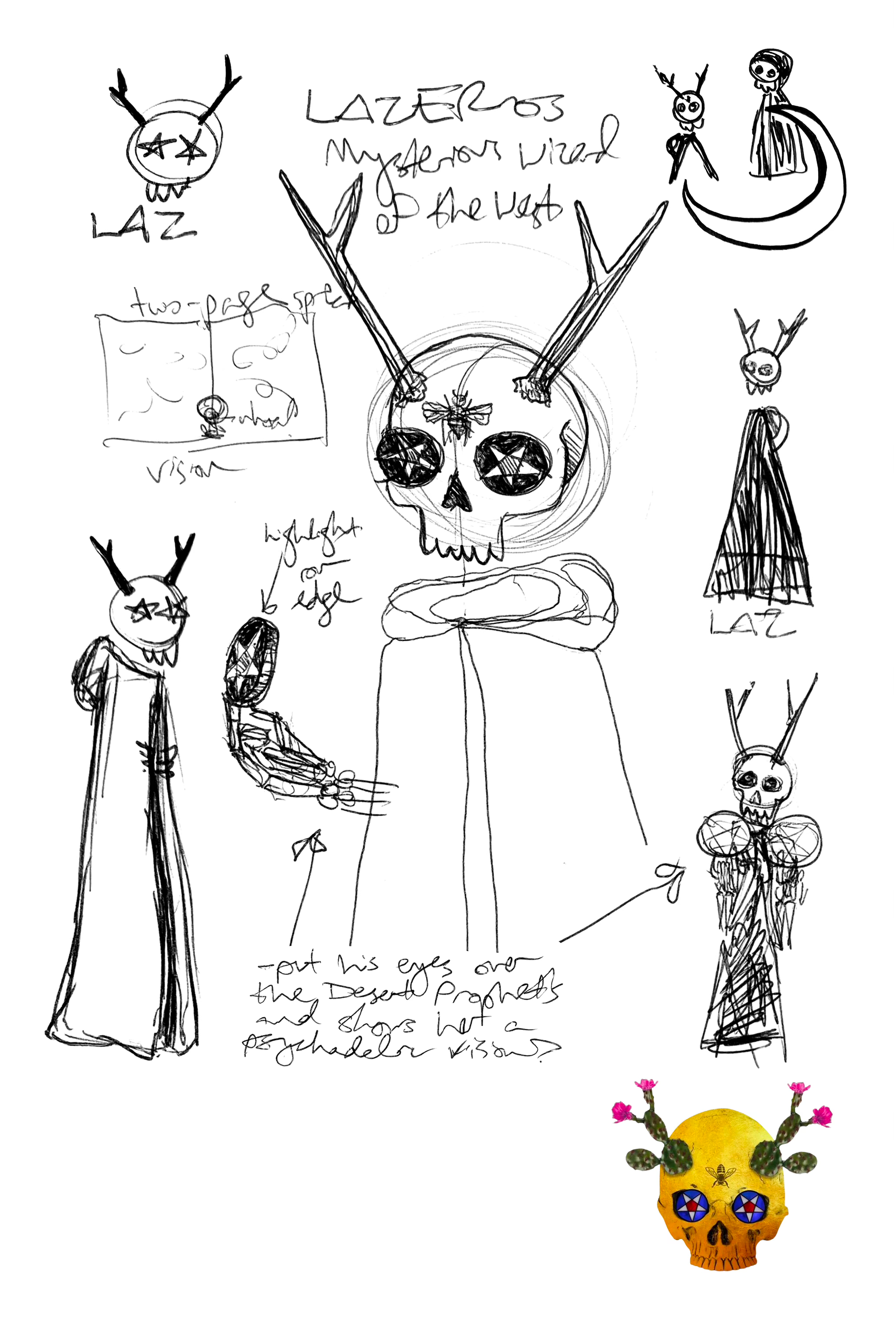 This book is kind of unique for me. Usually my art ideas come to me in a flash, very clear, fully formed, and I just execute them. But Desert Prophet started out in some unexpected places and I had to really work through them to get to its final form.